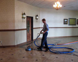 - Dirt and soil is removed from tile surfaces with ServiceMaster Cleaning & Restoration by Clean in a Wink high-pressured hot water rinsing technique.
