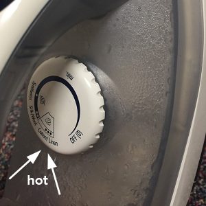 1. Heat iron to high. Or on cotton setting if you have that option.