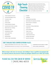 High touch items are among the most pathogen heavy surfaces in your facility. Routine cleaning and disinfecting of these items along with frequent hand washing are critical to breaking the chain of infection and creating clean, safe, and healthy environments.