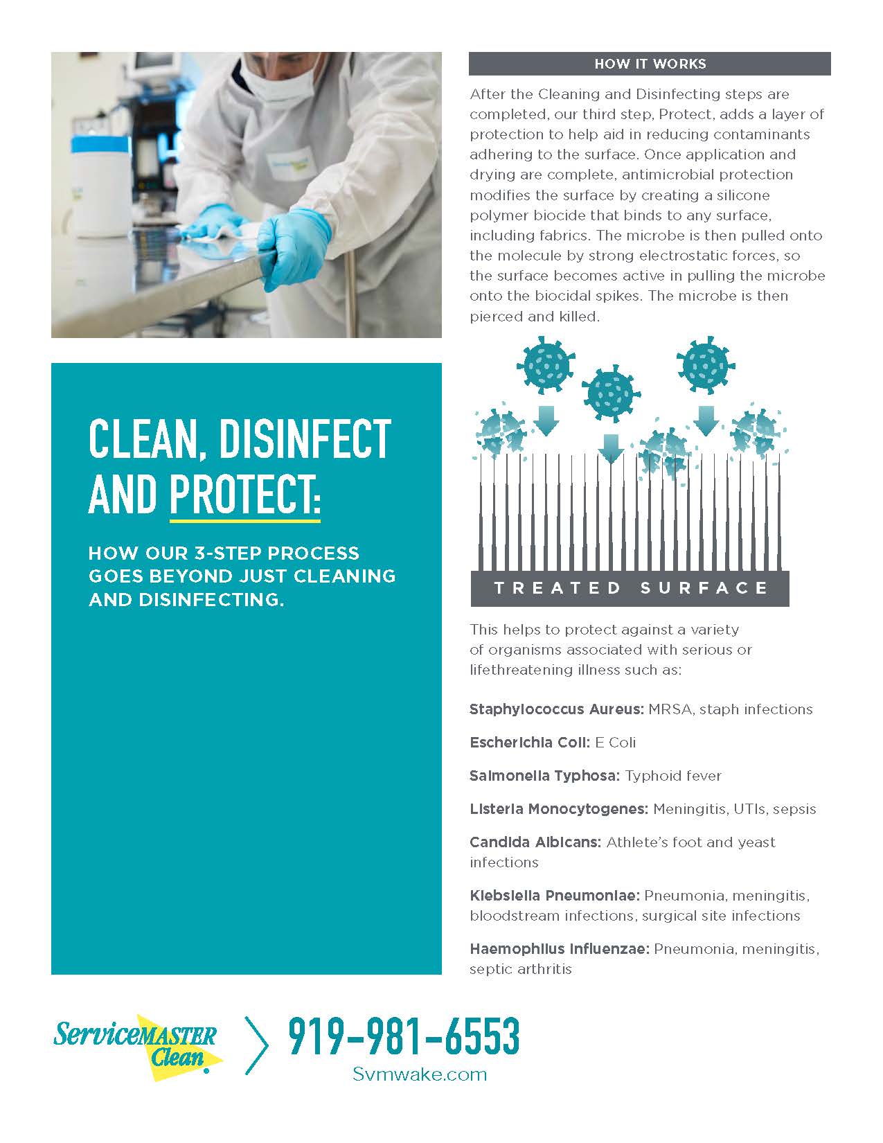 See how our 3-step process goes beyond just cleaning and disinfecting. It protects, adds a layer of protection to help aid in reducing contaminants adhering to the surface. Ultimately, it helps to protect against a variety of organisms associated with serious or life threatening illnesses such as MRSA, E Coli, pneumonia and sepsis.