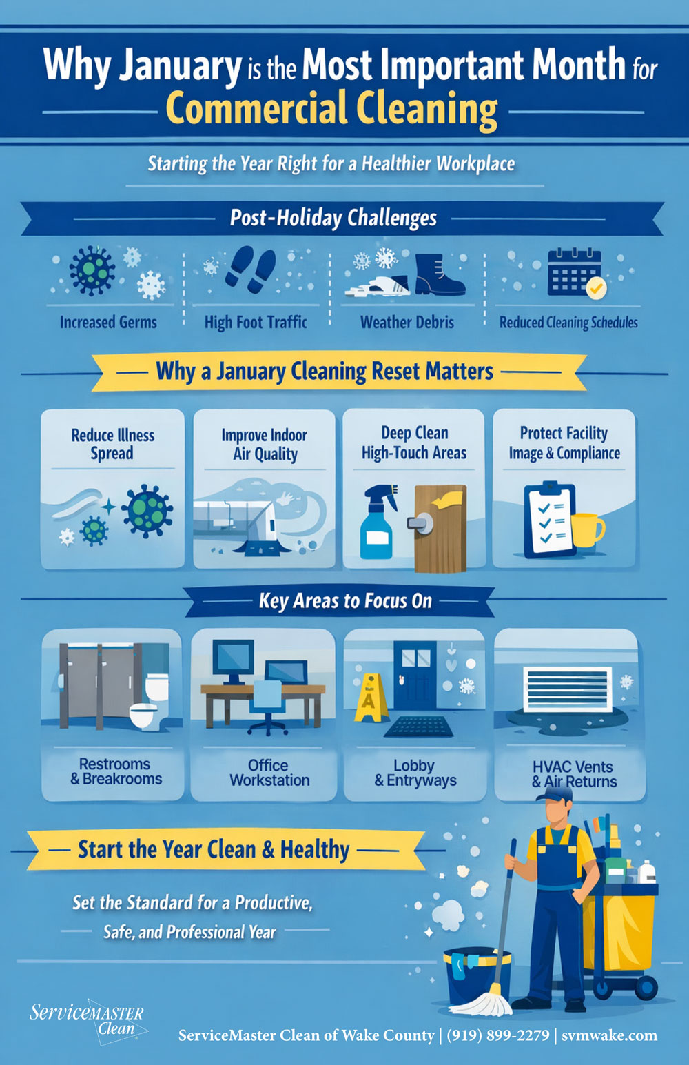 January sets the mood for the entire year in commercial facilities. After months of higher foot traffic, holiday gatherings, seasonal illness, and weather-related contaminants, most buildings begin the new year carrying more than just outstanding jobs—they carry germs, residue, and operational risk.