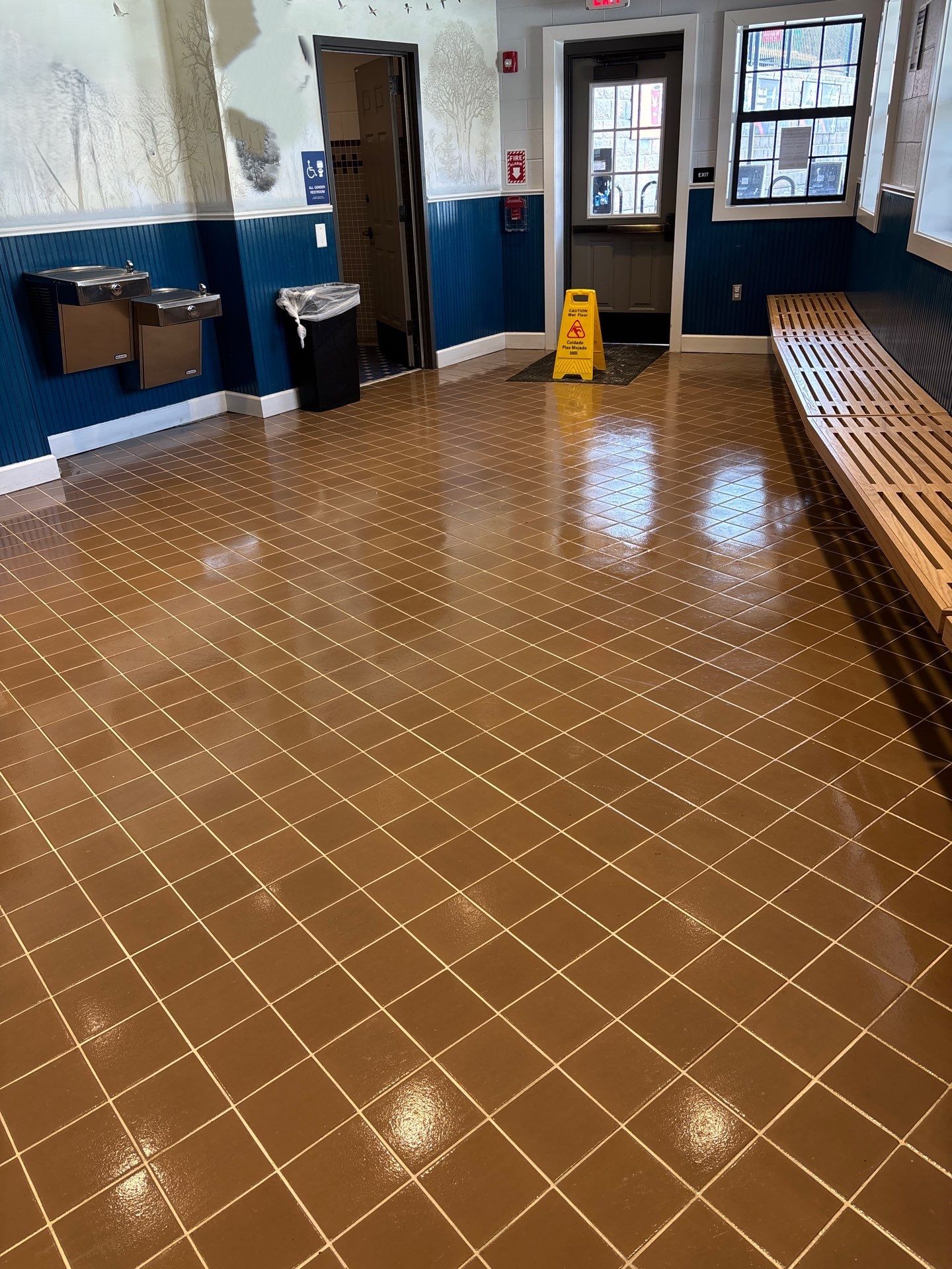 - Restroom grout cleaning and resealing where needed